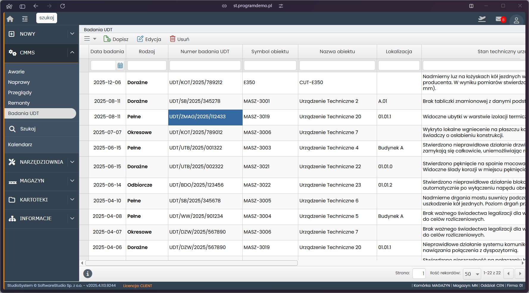 Studio TCS.net, kontrola przeglądów, system CMMS, ewidencja narzędzi, bezpieczeństwo BHP